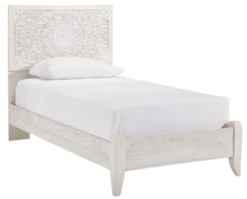 Your young trendsetter can live out her free spirit with this twin bed. Exquisite carved medallion pattern is a testament to true style. Charming whitewashed finish sets a foundation for a room bursting with personality. Headboard's adjustable height design offers added flexibility.Read More